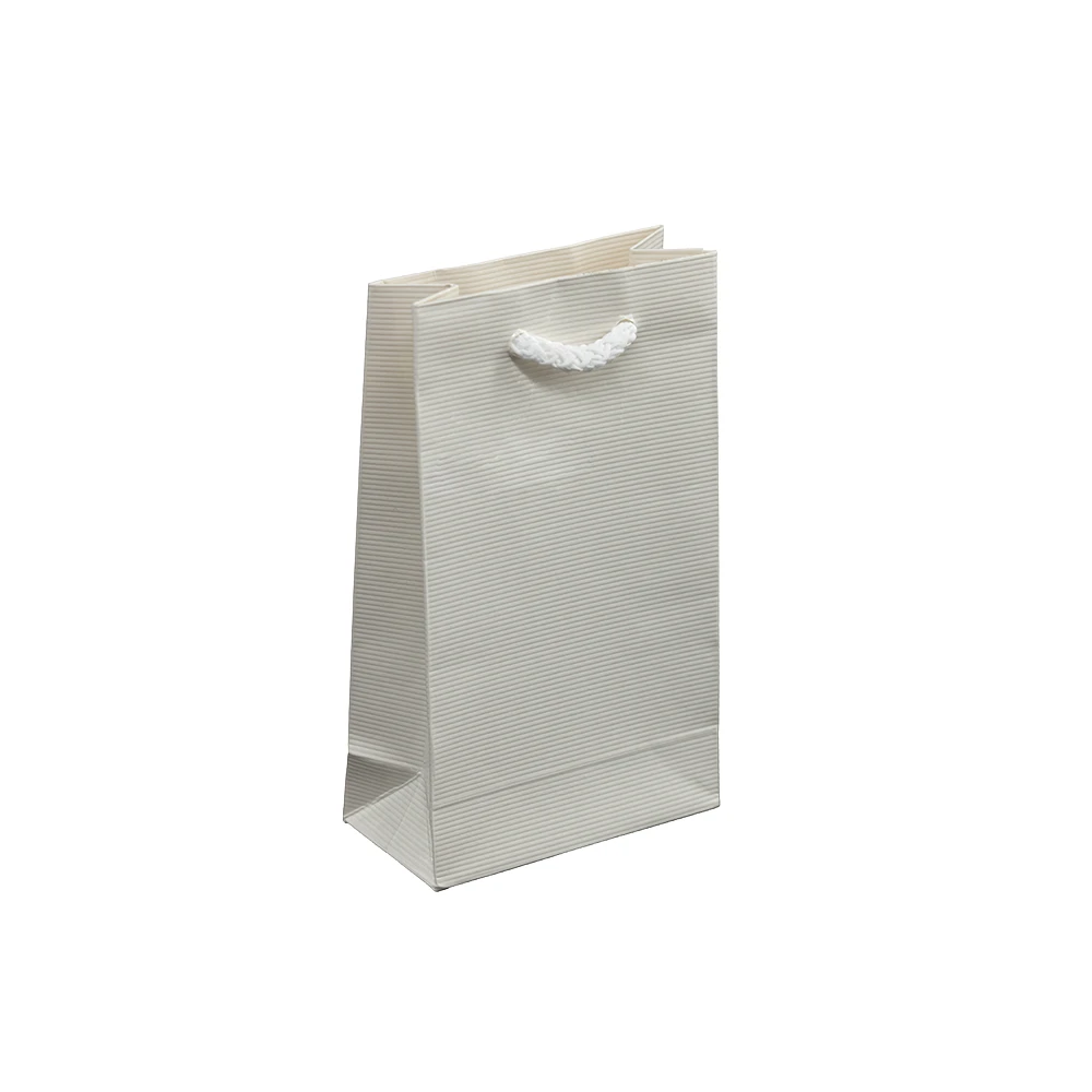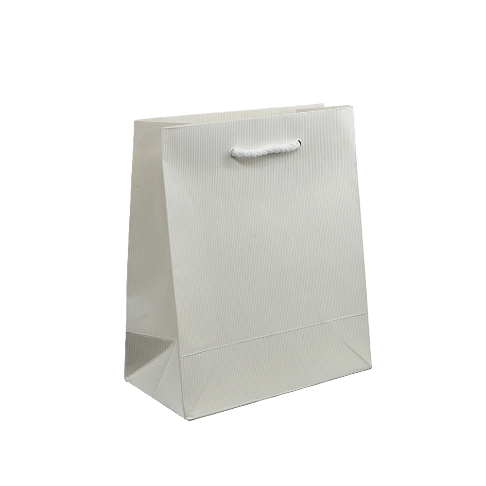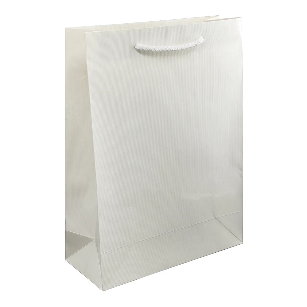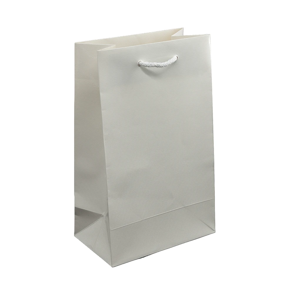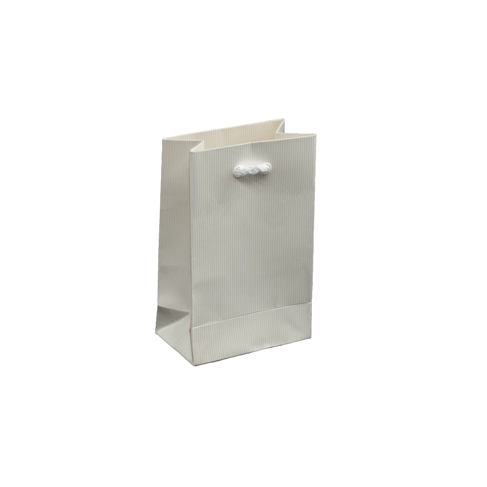 Αναβαθμίστε την εικόνα της επιχείρησής σας και προσφέρετε στους πελάτες σας μια μοναδική εμπειρία unboxing με τη Λευκή Ριγέ Χάρτινη Τσάντα Πολυτελείας. Σχεδιασμένη για να συνδυάζει την κομψότητα με την πρακτικότητα, αυτή η τσάντα αποτελεί την ιδανική επιλογή για brands που θέλουν η συσκευασία τους να αποπνέει ποιότητα και καθαρότητα.